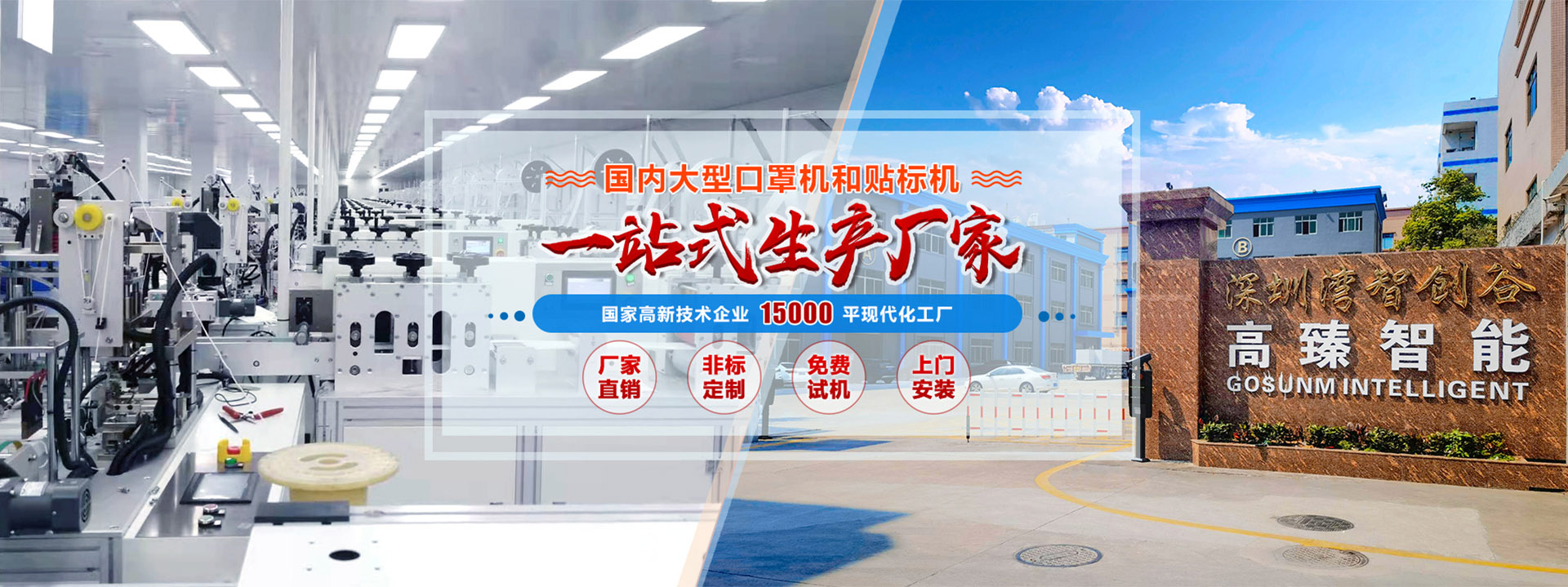 高臻主營(yíng)產(chǎn)品包含:口罩設(shè)備,包裝設(shè)備,貼標(biāo)設(shè)備等,集研發(fā),生產(chǎn),銷售,服務(wù)于一體的綜合性企業(yè)。
